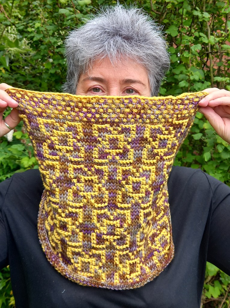 I’ve been busy with cowls for a while now. I know it’s too early to mention Christmas, but I do like to give cowls as gifts in the winter months – a bit like giving a virtual hug. This latest pattern release uses Tunisian crochet to create a mosaic pattern. I used up one of those lovely skeins of hand-dyed yarn that I bought on impulse because I loved the colours. Pattern is available on Etsy, LoveCrafts and on Ravelry https://www.ravelry.com/patterns/library/harlyn-cowl