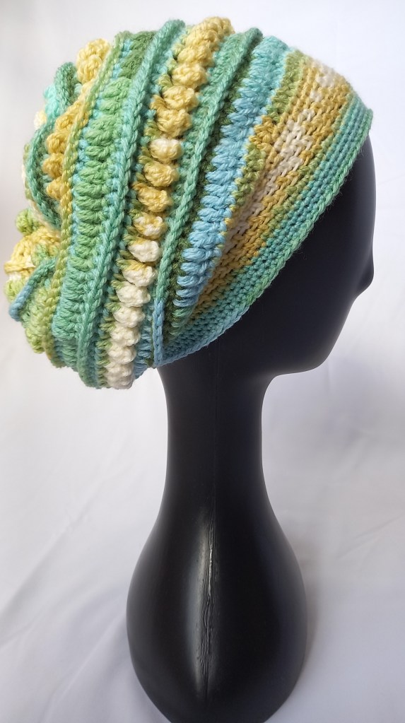 I published my very first design in December 2020, so now seems a good time to revisit some of those early projects. The Aspatria Slouch Hat was the first hat pattern that I published. This month I followed my own pattern in a different colour, and realised a few things. Firstly, the texture in the pattern is great, and the variegated yarn specified works really well. I’m as pleased with the pattern now as I was all those years ago. Secondly, the formatting I use now looks much more professional than the one I used when I started out, so I’ve refreshed that in this new version (and ironed out a couple of small typos from the original). Finally, the photos I took in 2020 were terrible! I’ve learned as I’ve gone along about photographing my work. There is still a lot to learn, but I’ve definitely improved, so I’ve updated all the images in my shops. The updated pattern can be found in Etsy, LoveCrafts and on Ravelry where it is currently included in the Autumn sale of hats, scarves and cowls.