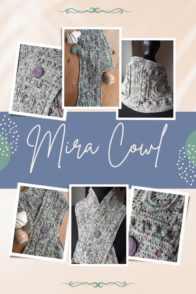 Welcome to the Mira Cowl. This was a challenge I set myself to use only one skein of beautiful indie yarn, a 4ply from Fruitful Fusion, to create something wearable. The cowl is made up of individual squares that are then stitched together, fastened with a single button. I happened to be going to York, and so I was able to visit the wonderful Duttons for Buttons to find exactly the shade and size of button that I needed. I loved making this cowl, and it drapes so well. I think it’s the most elegant thing I’ve made to date.