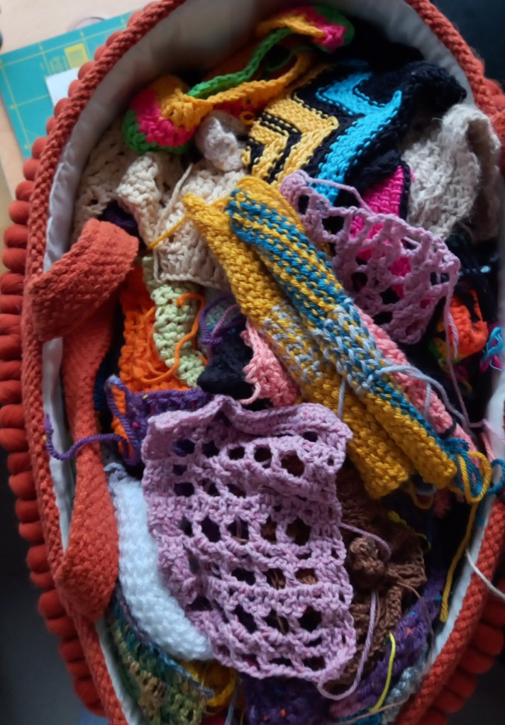 For items such as blankets, throws, or cushion covers, gauge is usually less critical. A few extra rows or stitches more or less will often make up any discrepancy. I have a small mountain of gauge samples and swatches which, when the mood takes me, I add to whichever freeform crochet project I’m working on.