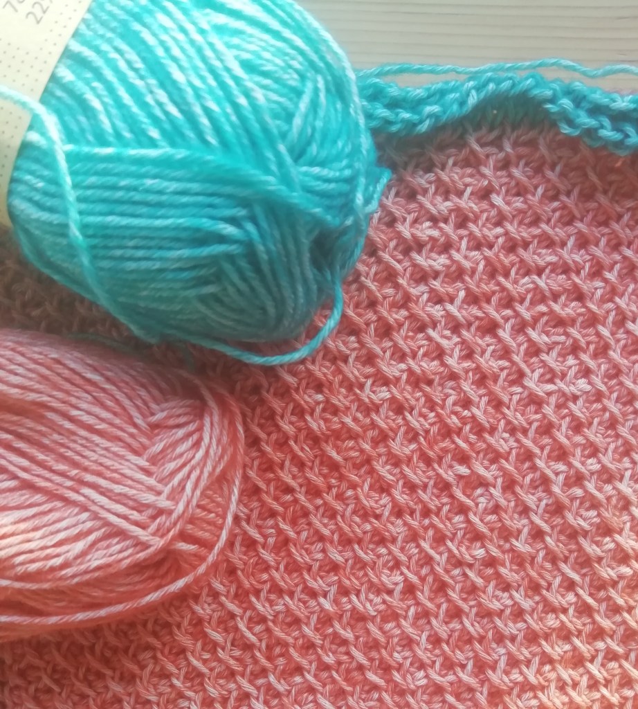 Extending my range of Tunisian crochet stitches today – this is Lattice stitch. Lovely to do, and surprisingly firm; the back is very dense. The stitch definition in this sport weight yarn is excellent : Scheepjes Stone Washed. This will be a blanket or throw when finished, in two colours.