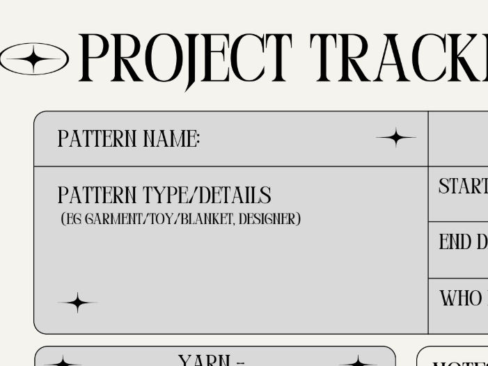 Never forget what project you bought that yarn for. Print off this A4 sheet and keep it with your yarn so you can resume easily, even after a long break.