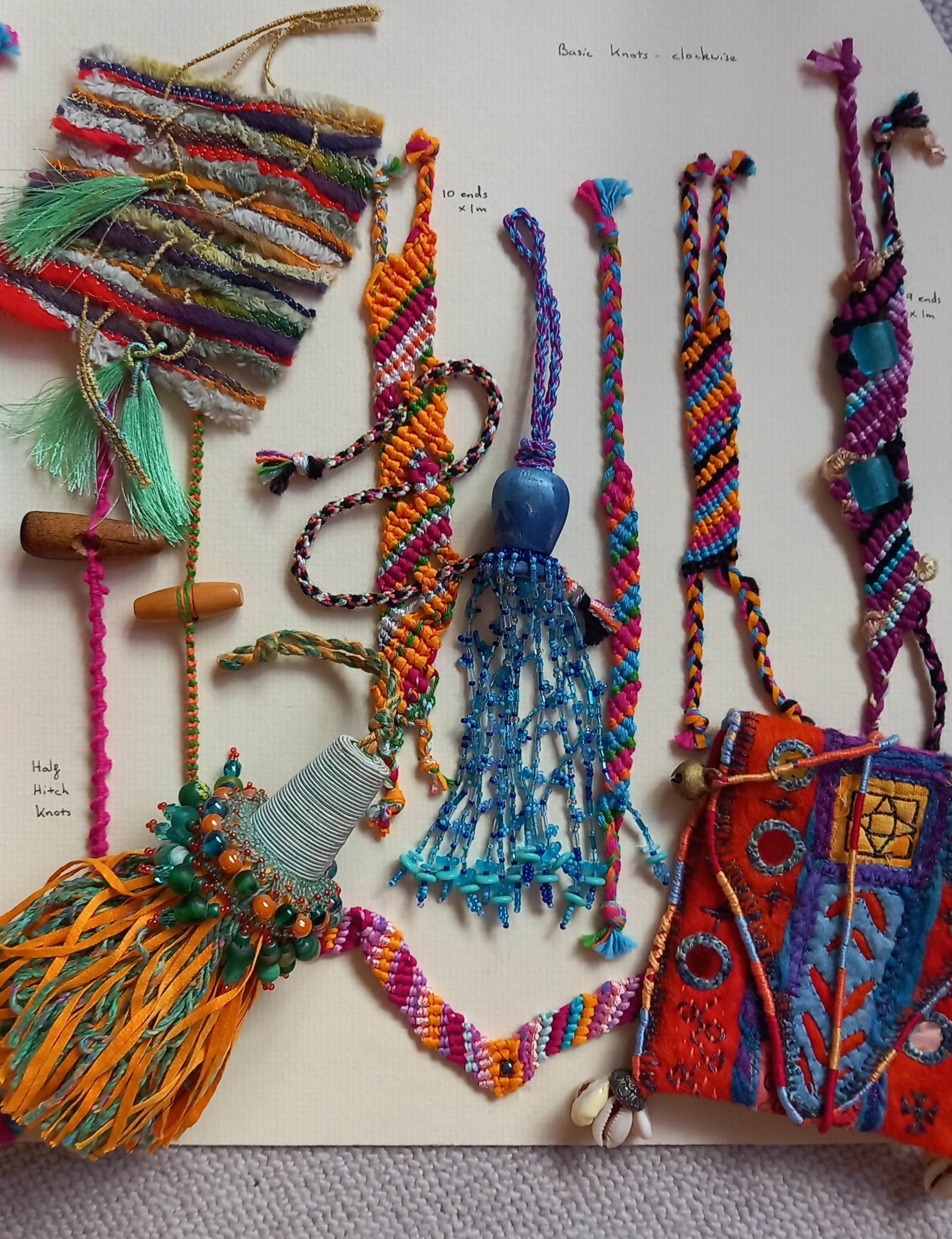 From simple plied and twisted cords, through using a lucet and working kumihimo braids on a marudai, to larger woven straps on an inkle loom, I can show you a multitude of ways for finishing your project. Having looked at cords, we explore the joy of tassels – big, chunky tassels with wooden heads, small delicate beaded tassels and everything in between.